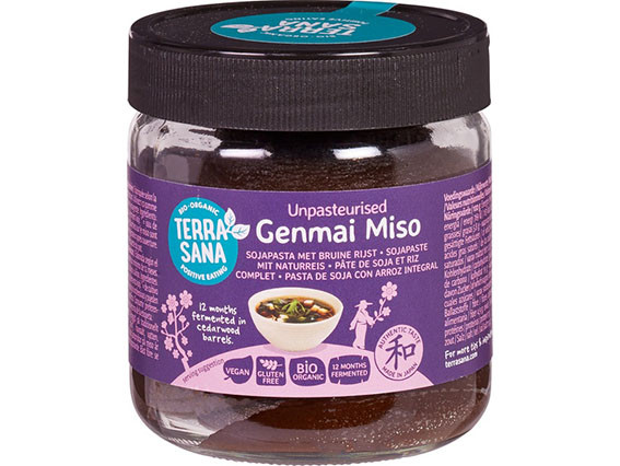 Deze genmai miso van TerraSana is een bijzondere soort rijstmiso; het wordt namelijk met bruine rijst (genmai) bereid. Dit levert een smakelijke miso op, die minder zoet is als gangbare rijstmiso en lichter van smaak. Je kunt de genmai miso gebruiken voor zomerse soepen, sauzen, dressings en dips.