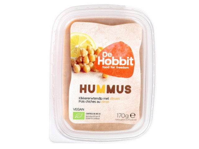 Ingredienten: Gekookte kikkererwten* 53%, water, zonnebloemolie*, TARWEstroop* (glutenvrij), zeezout, ui*, citroensap* 1%, voedingszuur (citroenzuur), komijn*, paprikapoeder*, knoflook*, zwarte peper*, bieslook*, verdikkingsmiddel (guarpitmeel*). * = Biologisch
