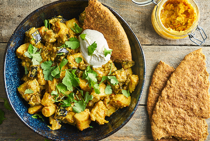Eénmaal het basisrecepten gemaakt maak je er een smaakvolle pastinaak-aubergine curry met rijst van. Hieronder het complete recept!