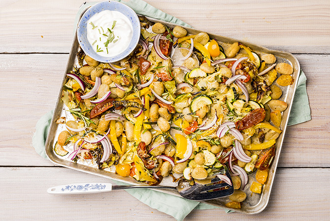 Voor dit gerecht is een grote oven een pré, want de gnocchi wordt pas echt krokant als de bakplaat niet te vol ligt. Heb je restjes over? Meng ze dan de voglende dag met geklutst ei en maak er een omelet van.