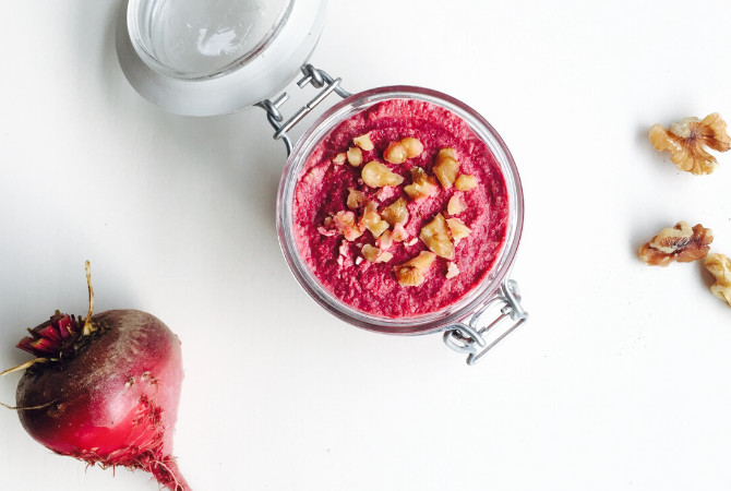 Natuurvoedingscoach en gastblogger Myrthe deelt haar gezonde recepten met ons. Deze bietenspread met mierikswortel is ideaal op een boterham of in een wrap. Zo krijg je ongemerkt extra groenten binnen - want wist je dat slechts 6% van de Nederlanders aan de aanbevolen dagelijkse hoeveelheid komt?