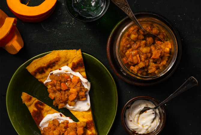 Serveertip: Heerlijk met Myrthe's Home Made Pompoen Naanbrood en een lekkere klodder crème fraîche.